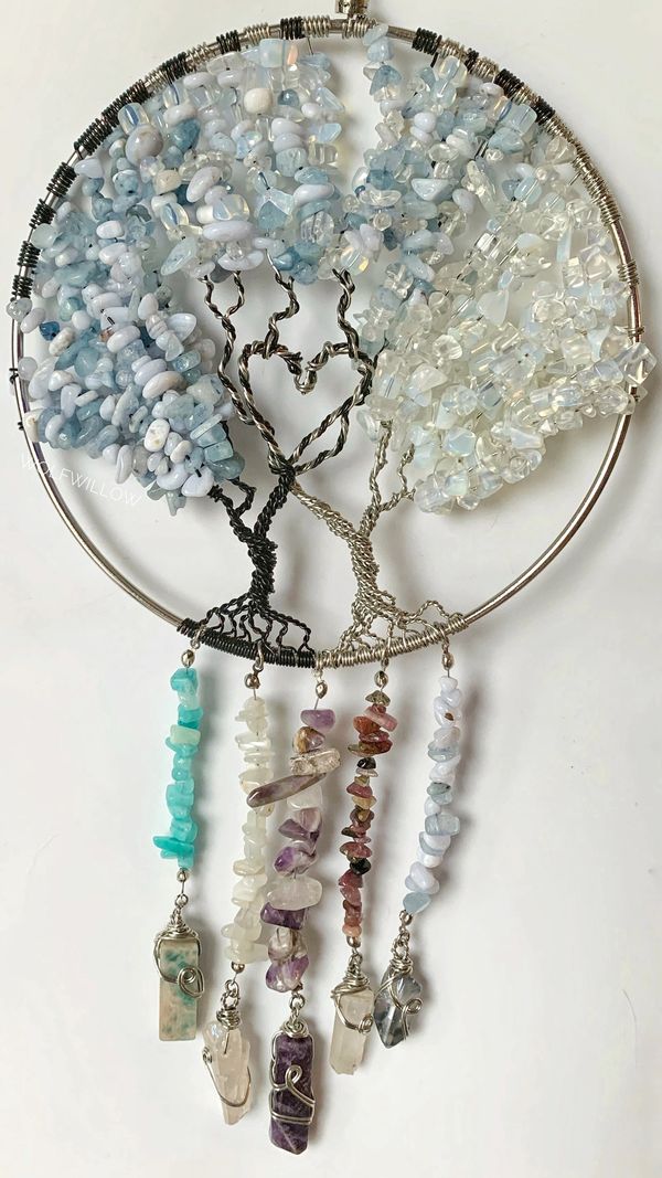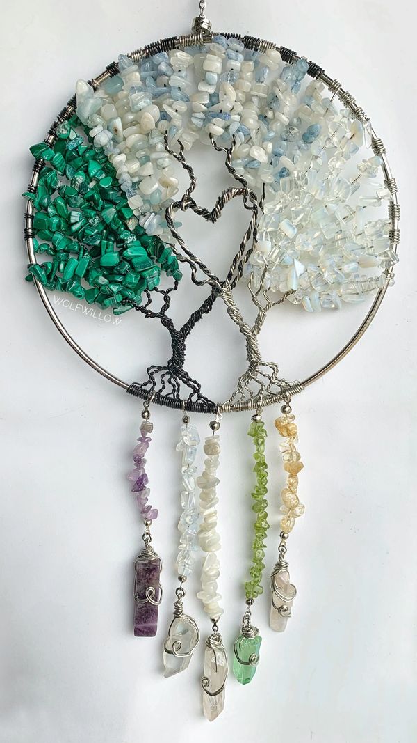 I offer my Tree of Life suncatchers in three sizes (3", 6" and 8" hoops) as well as three wire colors (silver, gold and black).